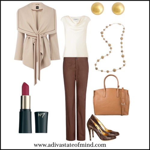 Recreate the looks above by pairing a neutral pant with a light color top. Complete the look with neutral accessories and a white trench coat. You can shop Bon-Ton, ASOS, Zappos, White House Black Market (also available in Petite) and 6pm for trench coats.